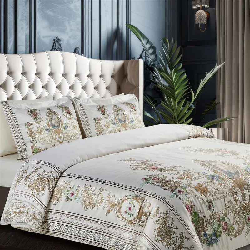 הדוגמא העדינה המשלבת בתוכה שושנים וארנומנטים בסגנון הייחודי למעצבת, היא יצירת אומנות אשר שואפת להעניק תחושה של רכות והרמוניה. העיצוב הייחודי מודפס על בד סאטן איכותי בשילוב בדי פרקל כותנה בצפיפות 200 חוט איכותיים במיוחד.