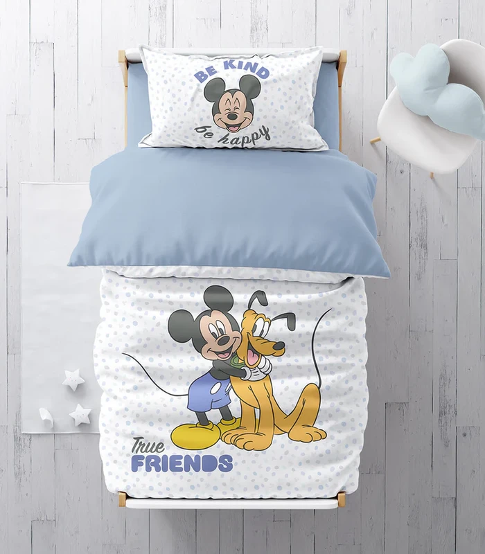 סט מצעים למיטת תינוק/מעבר 100% כותנה דגם מיקי ופלוטו