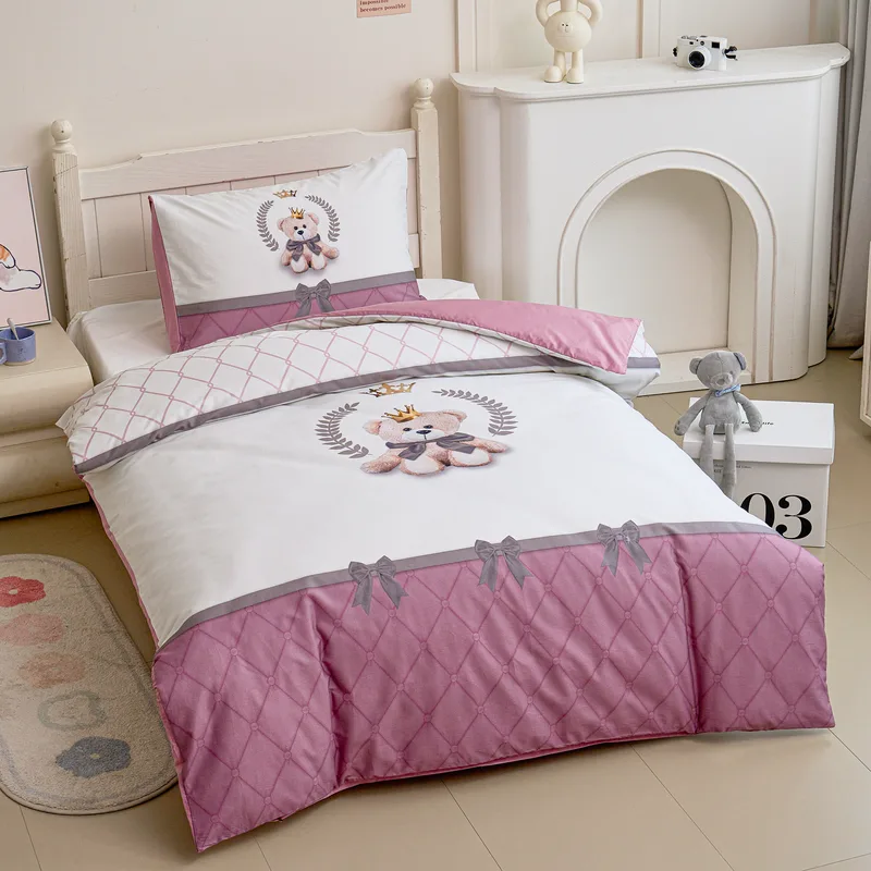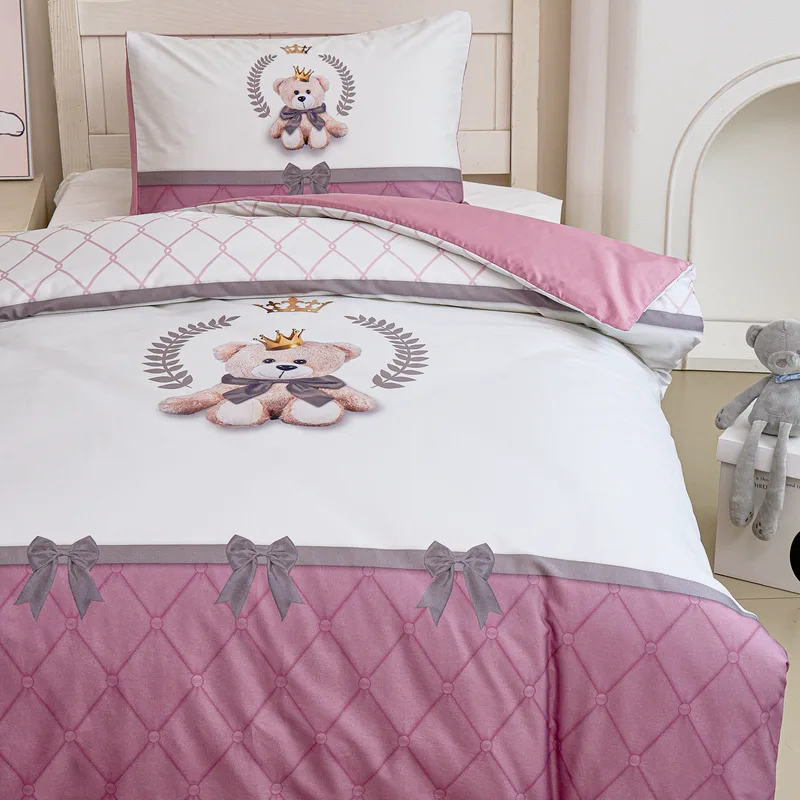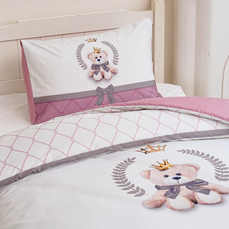 סט מצעים נוער 80/200 100% כותנה סאטן רויאל טדי ורוד