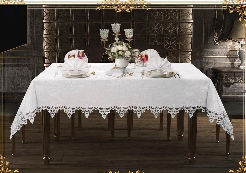 מסגרת התחרה העדינה שמקיפה את המפה מוסיפה טאצ' קלאסי ומרשים.
