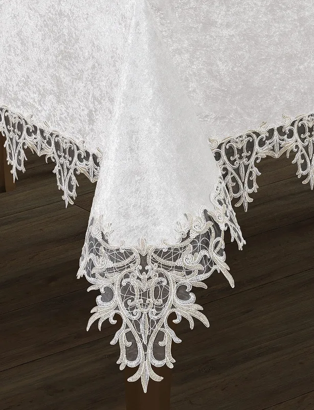 מסגרת התחרה העדינה שמקיפה את המפה מוסיפה טאצ' קלאסי ומרשים.