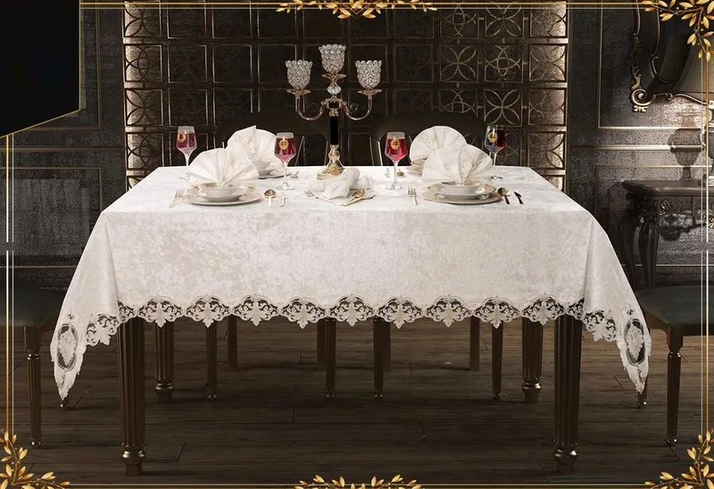 מסגרת התחרה העדינה שמקיפה את המפה מוסיפה טאצ' קלאסי ומרשים.