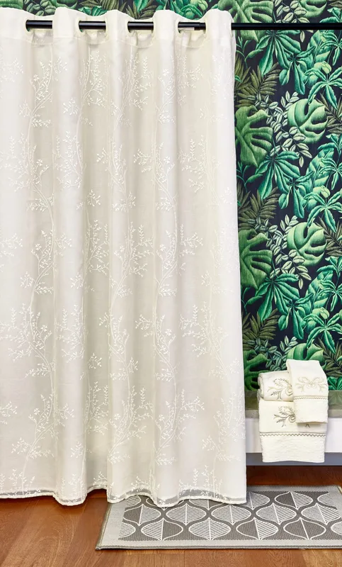 וילון לאמבטיה עשיר ואיכותי במיוחד עשוי מבד יוקרתי בעיצוב מודרני המשלב דוגמא עדינה בהבלטה ייחודית המוסיפה אלמנט עיצובי לחדר האמבטיה. הוילון כולל גם שכבת הגנה איכותית מחומר עבה במיוחד המונעת חדירת מים. הוילון תפור עם רינגים מפלסטיק מותאמים במיוחד לחדר האמבט ומאפשרים גם תליה קלה ונוחה על כל מוט והסטה מהירה של הוילון.