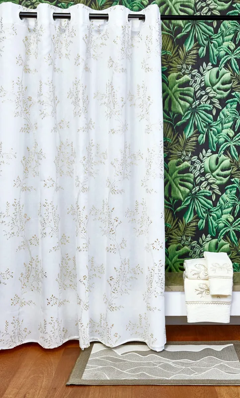 וילון לאמבטיה עשיר ואיכותי במיוחד עשוי מבד יוקרתי בעיצוב מודרני המשלב דוגמא עדינה בהבלטה ייחודית המוסיפה אלמנט עיצובי לחדר האמבטיה. הוילון כולל גם שכבת הגנה איכותית מחומר עבה במיוחד המונעת חדירת מים. הוילון תפור עם רינגים מפלסטיק מותאמים במיוחד לחדר האמבט ומאפשרים גם תליה קלה ונוחה על כל מוט והסטה מהירה של הוילון.