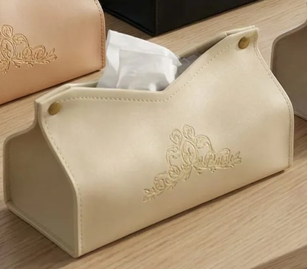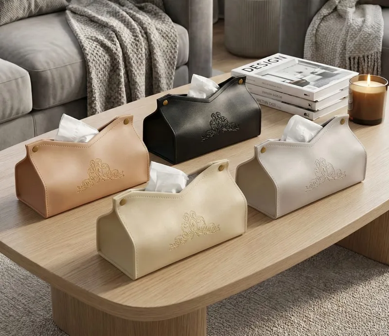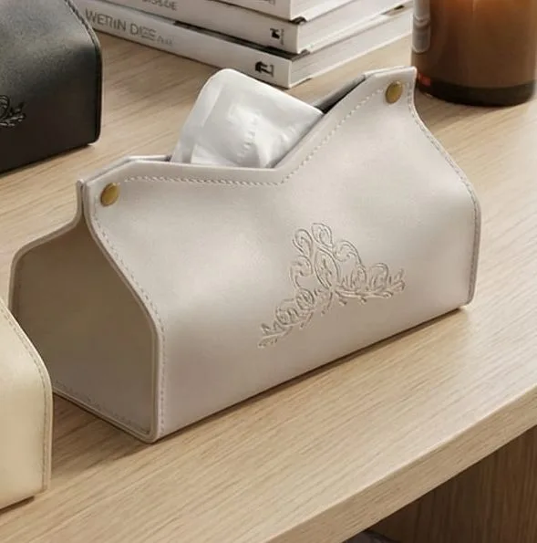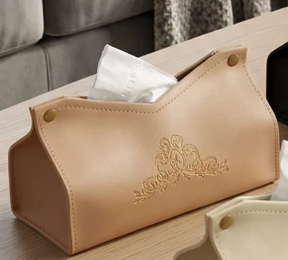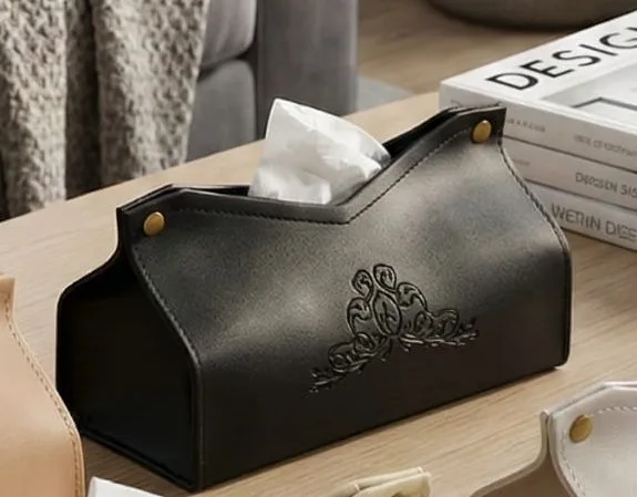 תיק לנייר טישו דמוי עור יוקרתי ואיכותי בסגנון מודרני בהטבעה מלכותית במראה נקי.