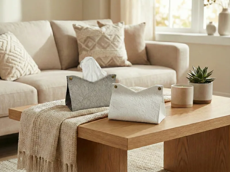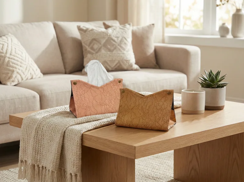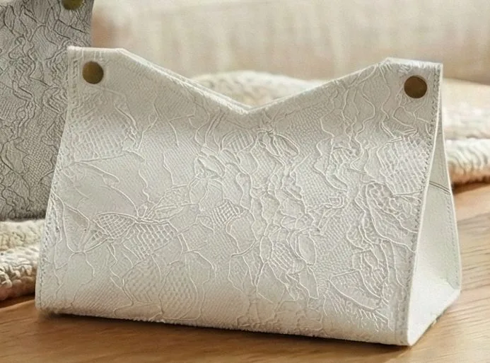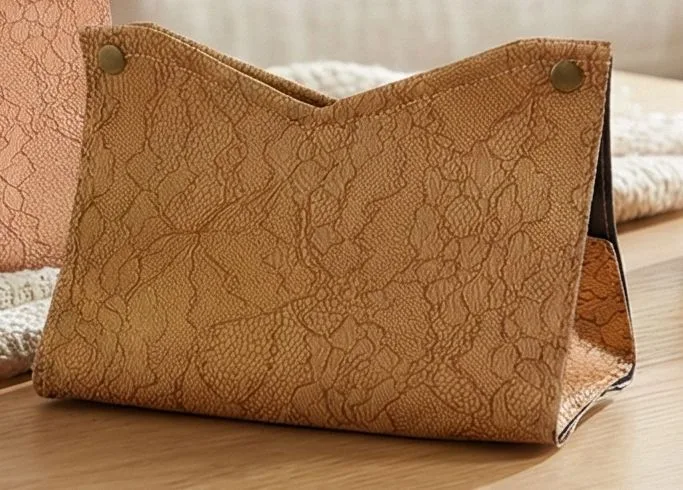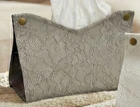 תיק לנייר טישו דמוי עור יוקרתי ואיכותי בסגנון מודרני בהטבעה מלכותית במראה נקי.