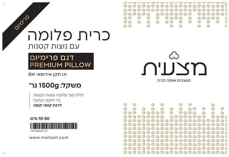 כרית נוצות קטנות עם פלומה 1500 גרם פרימיום