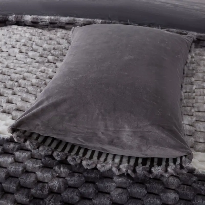 סט מצעי קטיפה זוגי 160/200 דגם קורל אפור