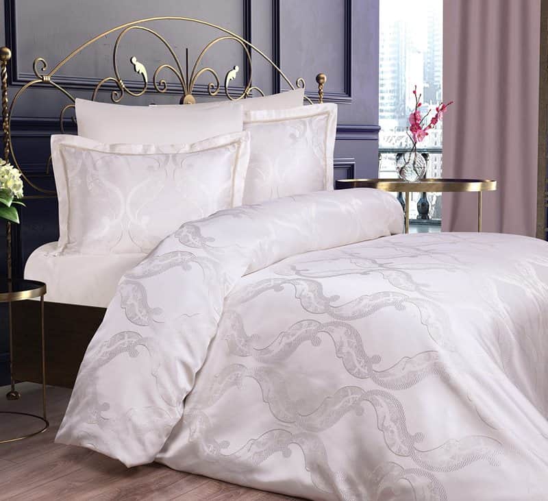 הסט משלב עיטורים מלכותיים על גבי בד ג'קארד בצבעים אלגנטיים. עיצובו הייחודי של הסט עם דוגמתו הקלאסית הופכת אותו לבחירה המושלמת לחדר השינה ומעניקה לו מראה מלכותי ויוקרתי. הסט עשוי מבדי ג'קארד בשילוב בדי 100% כותנה איכותית.