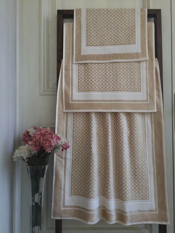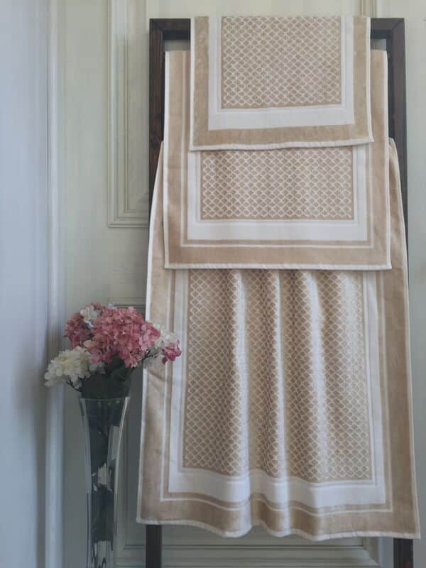 מגבות ג'ארקד 100% כותנה, עשויות מכותנה איכותית. במשקל גבוה . בעיצוב יוקרתי וייחודי למצעית, המוסיף עניין וקסם לחדר האמבטיה. רכות ונעימות למגע.