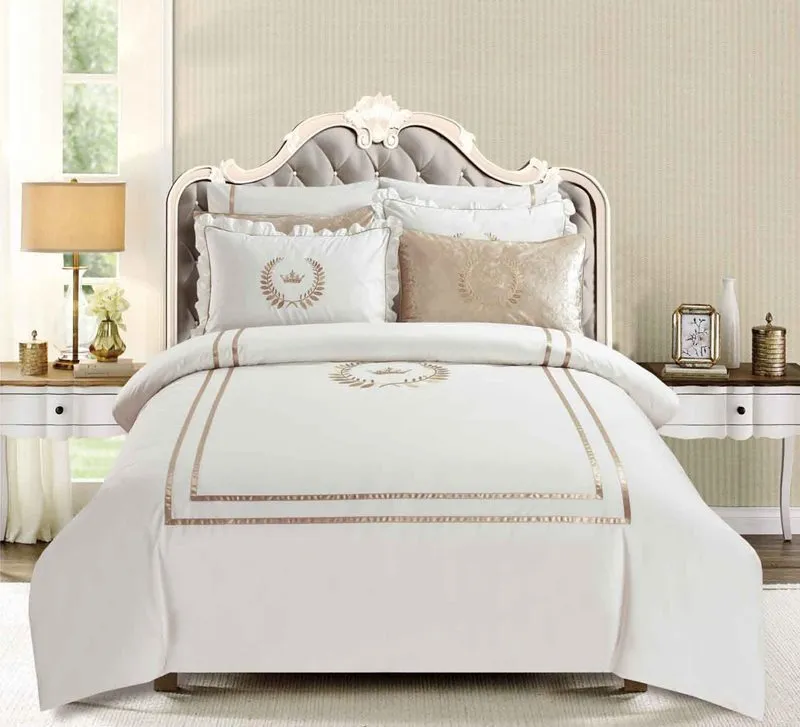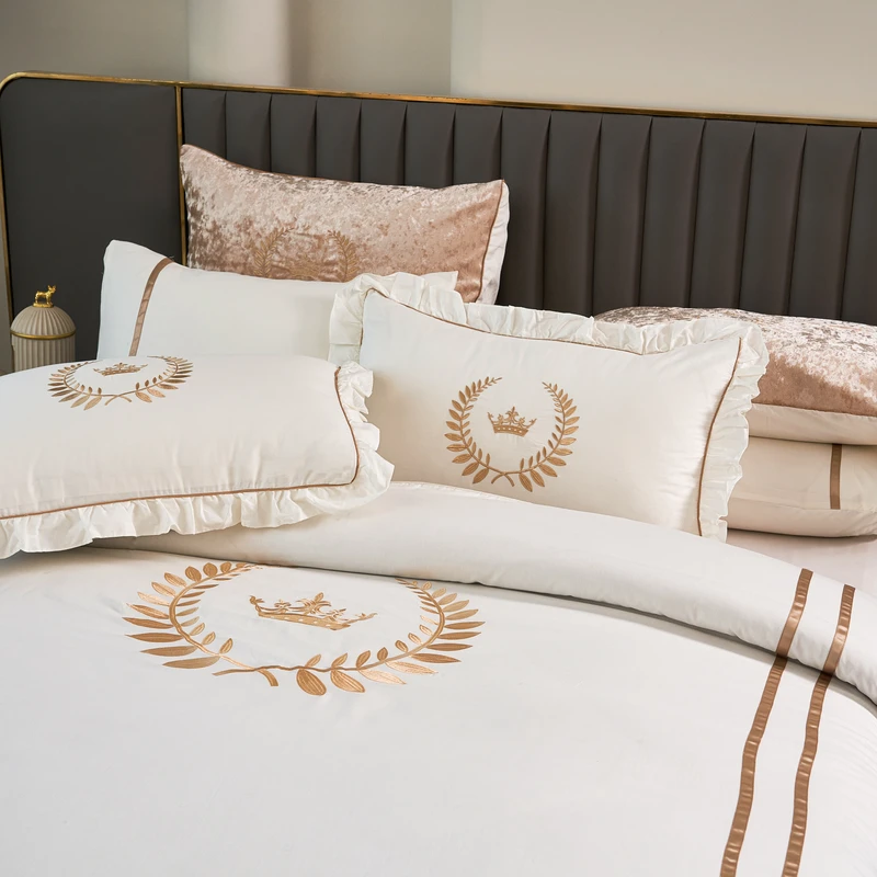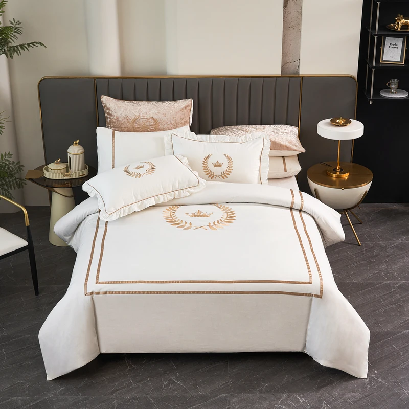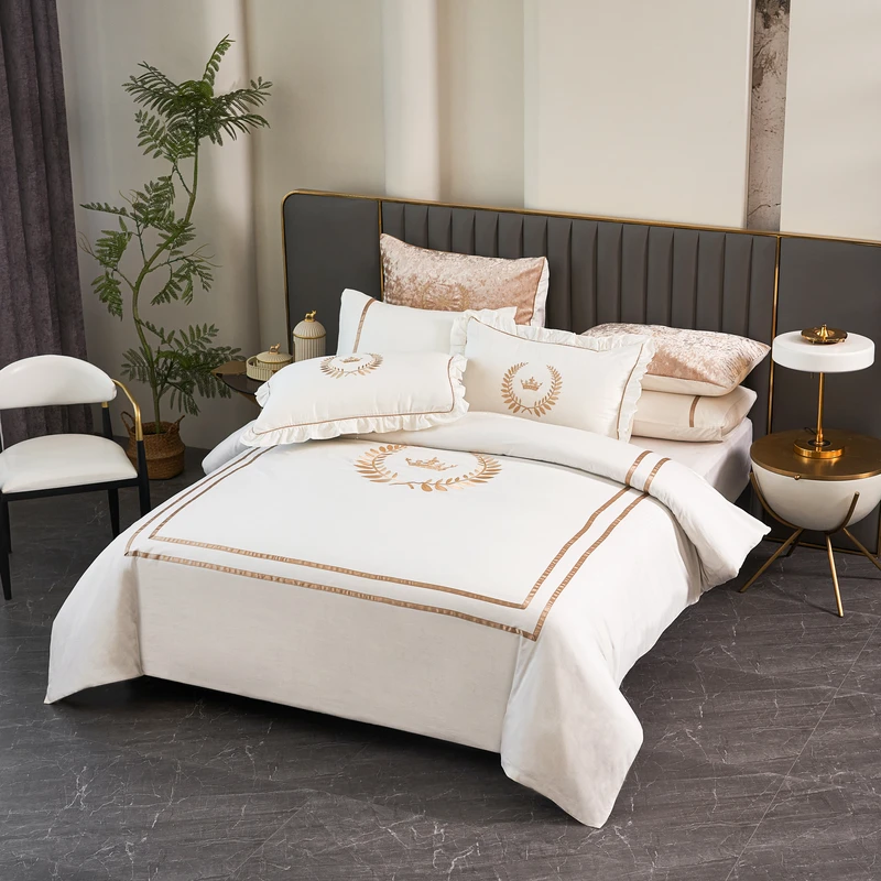 סט מצעים יוקרתי מבד 100% כותנה סאטן בצפיפות בד גבוהה במיוחד, בשילוב רקמה התפורה בבד