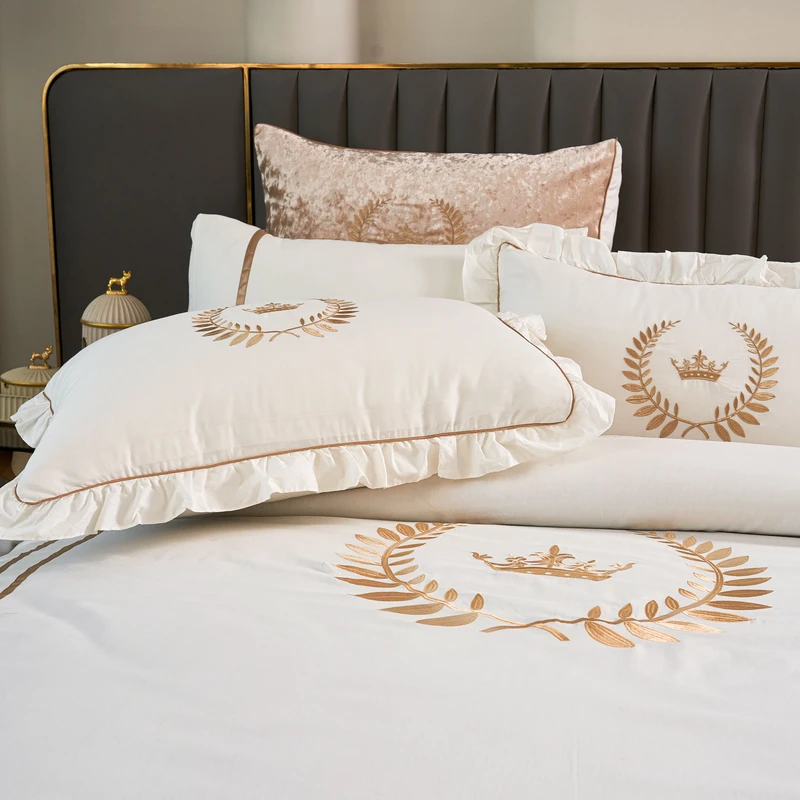 סט מצעים יוקרתי מבד 100% כותנה סאטן בצפיפות בד גבוהה במיוחד, בשילוב רקמה התפורה בבד