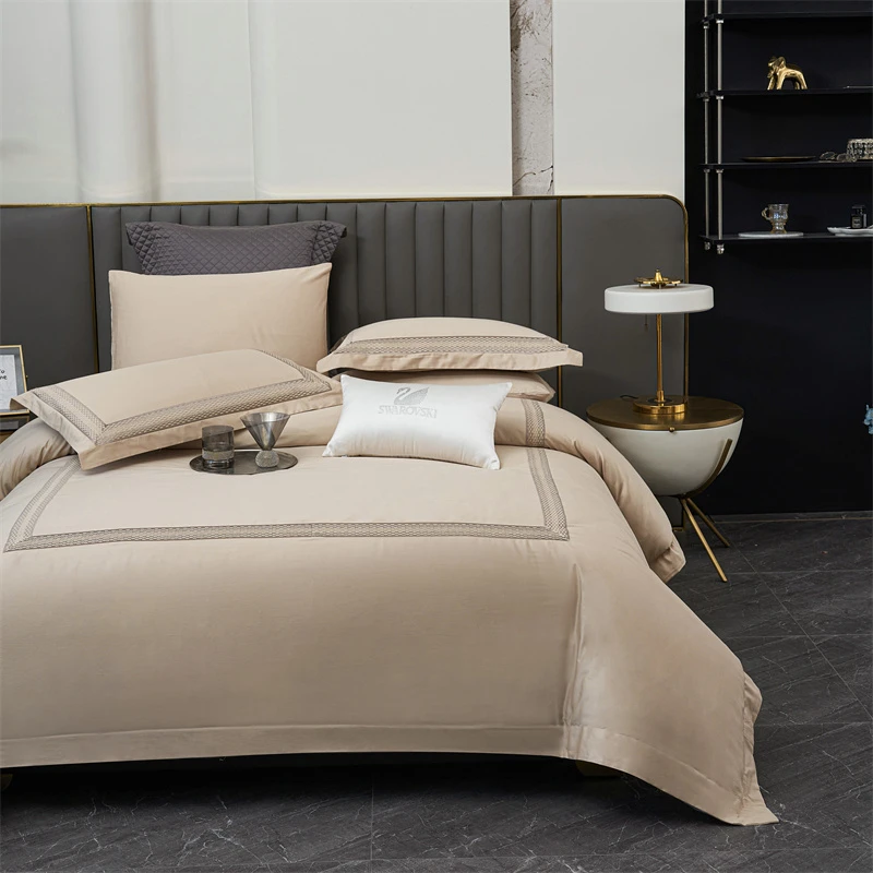 מערכת מצעים יוקרתית מבדי 100% כותנה אריגת סאטן.
