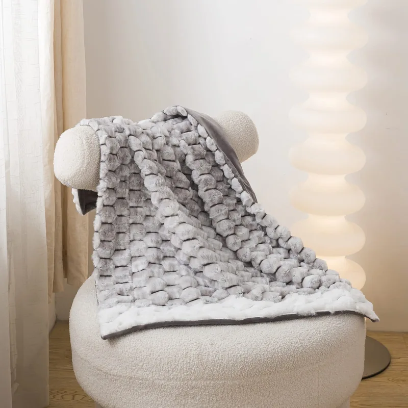 שמיכת קטיפה לעגלת תינוק דגם קורל אפור 70/90 ס"מ
