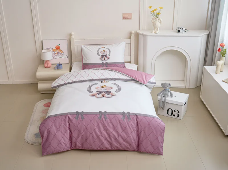 סט מצעים יחיד 90/200 100% כותנה סאטן רויאל טדי ורוד
