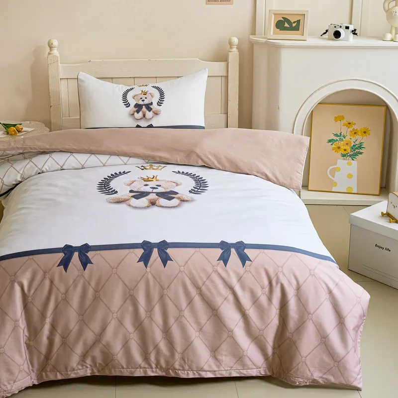 סט מצעים נוער 80/200 100% כותנה סאטן רויאל טדי בז'